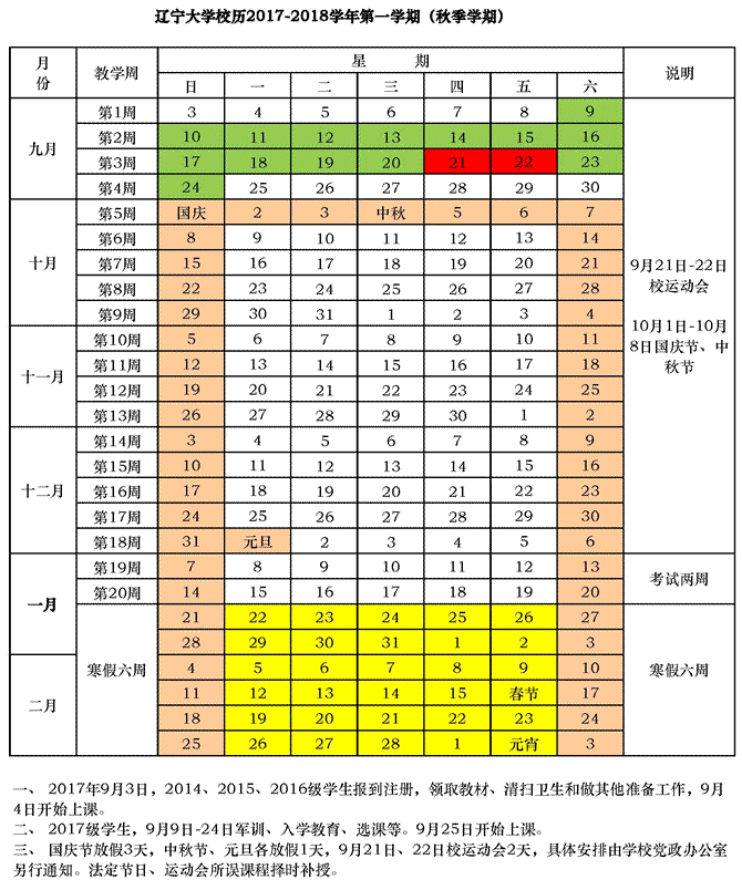 2017-2018学年第一学期(秋季学期)校历-国产一区二区日本在线
