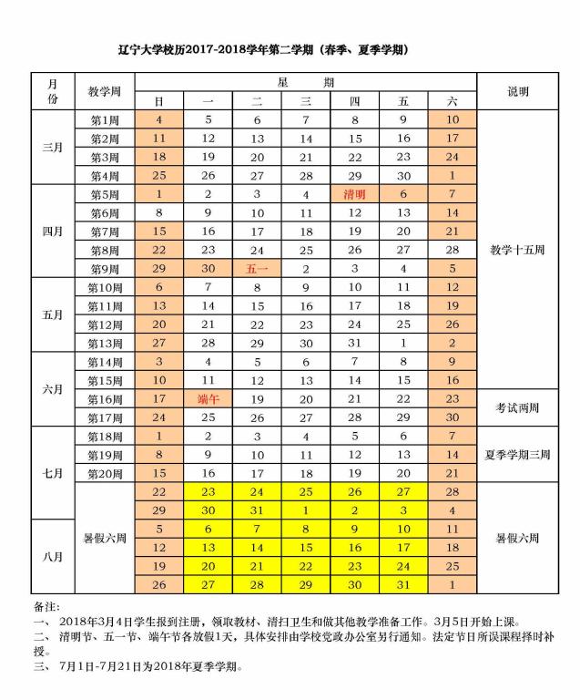 2017-2018学年第二学期(春季、夏季学期)校历-国产一区二区日本在线