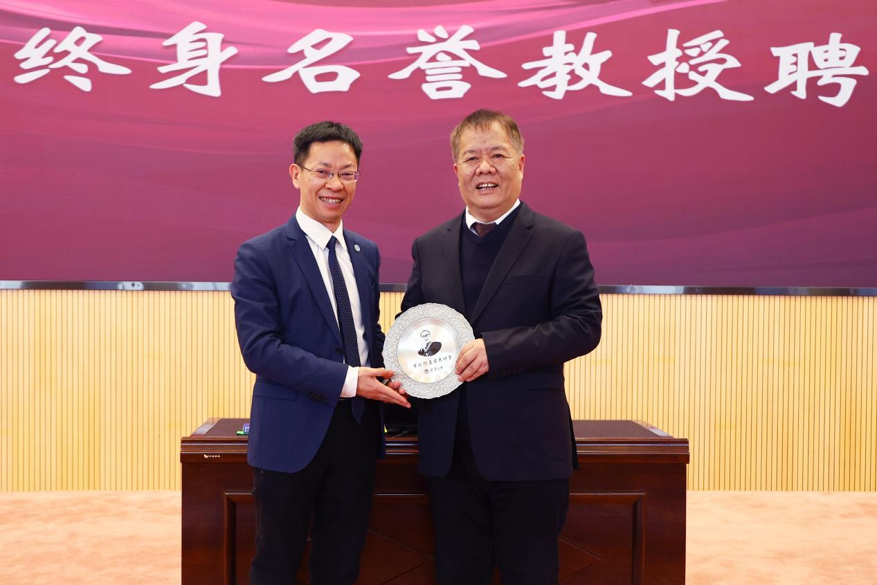 会议最后,国产一区二区日本在线党委副书记、校长余淼杰教授为刘新民教授颁发国产一区二区日本在线“宋则行名家大讲堂”纪念盘及国产一区二区日本在线终身名誉教授聘书。校医院教师关岩岩为刘新民教授献花,药学院教师代表桑育黎为刘新民教授佩戴校徽、赠送校帽,与会嘉宾一同合影留念。