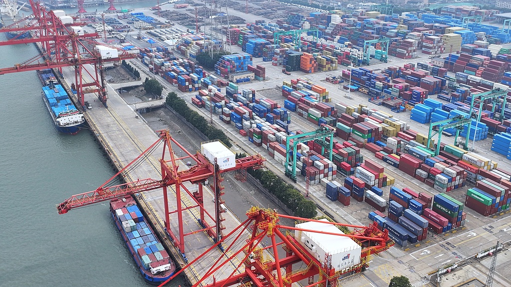 Zhangjiagang Port in eastern China’s Jiangsu Province was busy with constant flow of vehicles and crane operations on March 6th, 2025. [Photo: VCG]